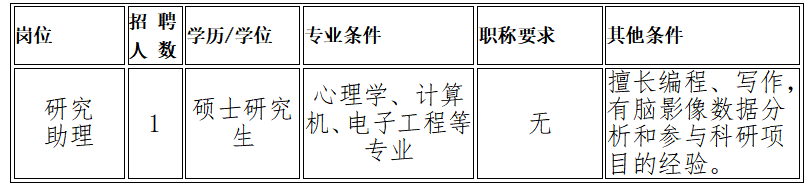 杭州师范大学临床医学院认知与脑疾病研究中心赵娜课题组因工作需要,面向社会公开招聘编外聘用人员,现将相关事项公告如下: